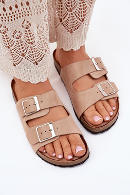 Women's Sandals On Cork Platform With Buckles Beige Evisolla