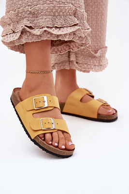 Women's Sandals On Cork Platform With Buckle Yellow Evisolla