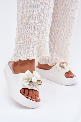 Women's Foam Slippers On Platform With Bow And Brooch White Marlize