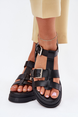 Eco Leather Women's Sandals With Buckles Black Mireza