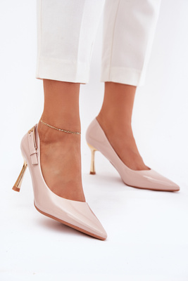 Lacquered High Heels With Gold Buckle Beige Mivira