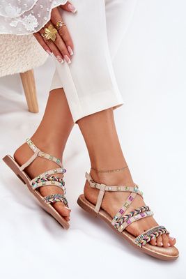 Ladies Sandals With Decoration And Braided Straps Beige Delyra