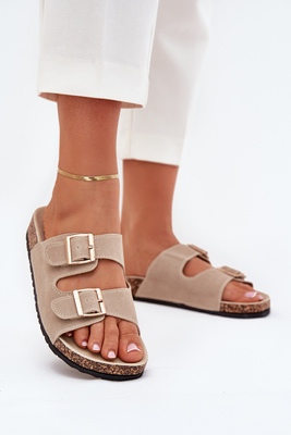 Women's Sandals With Golden Buckles And Stitching Beige Lunera