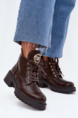 Warm Lined Women's Ankle Boots with Golden Detail Chocolate Kavirae