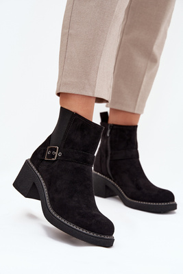Women's Block Heel Ankle Boots with Buckle Black Nymera