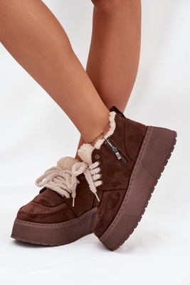 Women's Snow Boots On Platform With Shearling Type Lamb Brown Luma