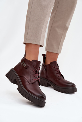Low Insulated Women's Ankle Boots on Block Heel with Decorative Strap Bordeaux Therisse