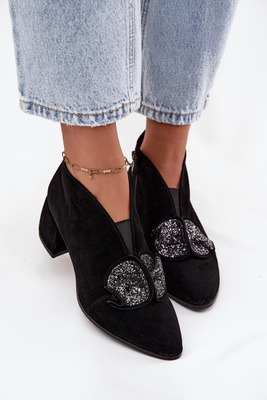 Leather Suede Women's Ankle Boots with Decoration D&A MR52-182 Black