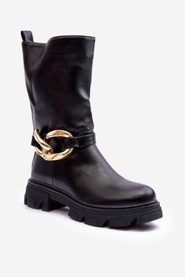 Women's Chunky Boots Workers with Rhinestones Black Tyralis