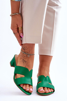 Classic Low Heel Leather Sandals Green Miley