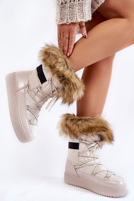 Women's Lace-up Snow Boots With Fur Beige Shannon