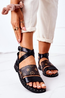 Sandals On A Block Heel Black With A Snake Pattern Folly