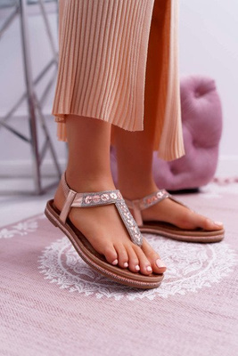 Women's Flat Slip-on Sandals With Zircons Champagne Satina