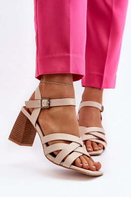 Women's Beige Patent Leather Shoes with Decorative Buckle Lindnessa