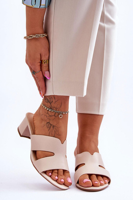 Women's Leather Sandals On Heel Beige Seyna