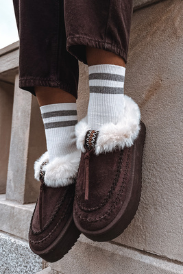 Women's snow boots on platform with fur and embroidery dark beige Querina