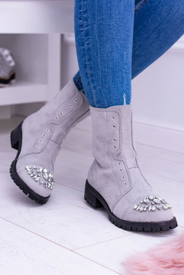 Lu Boo | Grey Women's Ankle Booties with Zircons Carrie