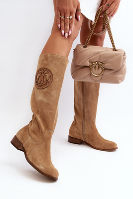 Beige Women's Suede Over-the-Knee Boots Zazoo 3367/2