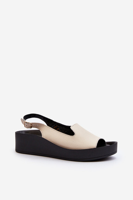 Zazoo 2893 Women's Leather Sandals on Thick Sole Light Beige