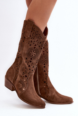 Zazoo 3396 Suede Cut-Out Mid-Calf Boots Brown
