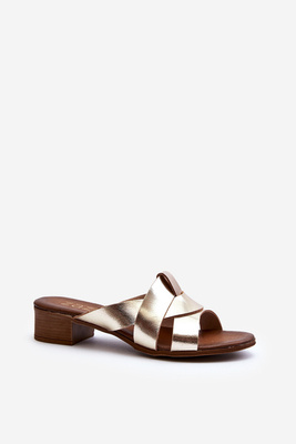 Zazoo 40236 Leather Women's Mules with Low Heel Gold