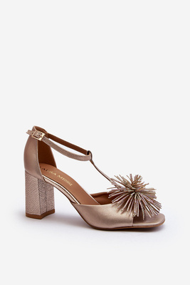 Leather sandals with heel decoration Laura Messi 2758 Gold