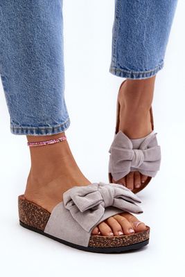Women's Slippers on Cork Platform with Bow Grey Tarena