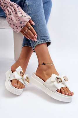 Women's Flip Flops with Bow and Teddy Bear White Katterina