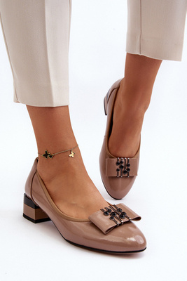 Beige Patent Leather Court Shoes with Block Heel Ilvanna