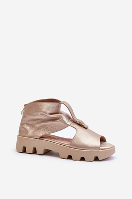Zazoo 999 Leather Women's Sandals with Golden Zip