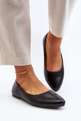 Women's Black Eco Leather Ballerina Flats Tindomiel