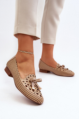 Women's Beige Ballerina Flats with Bow Nestavia