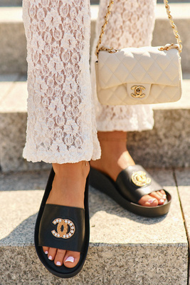 Elegant Lightweight Women's Sandals with Natural Leather Ornament S.Barski KV27-013 Black