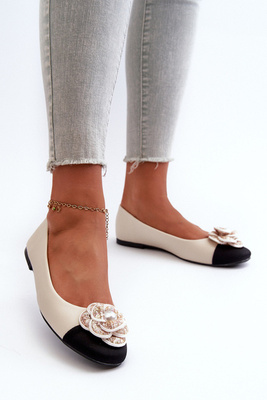 Women's Ballerina Flats in Beige Eco Leather with Decorative Detail Divinella