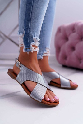 Laura Messi Silver 1960 Women's Flat Leather Sandals.