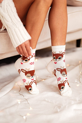 Christmas Women's Socks Dogs In Santa Hat Beige