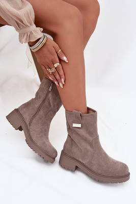 Insulated Women's Boots with Turned Cuff on Heel Eco Suede Chocolate Elivira