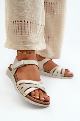Comfortable And Lightweight Women's Sandals With Velcro Inblu CN000041 Beige-Silver