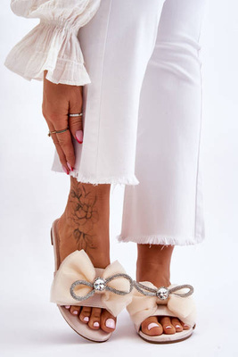 Women's Slippers With Bow And Rhinestones Beige Jolene