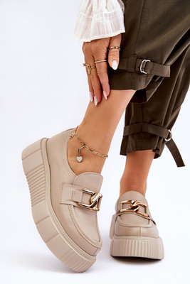 Fashionable leather shoes on the platform Beige Marsol
