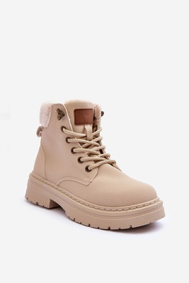 Fashionable Lace-up Boots with Decorative Strip Beige Rocky