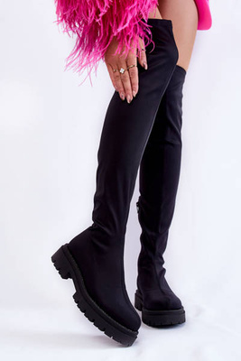 Women's Suede High Heel Boots Lewski Shoes 2934/B Black