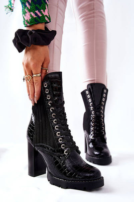 Women's Boots On High Heel Crocodile Pattern Black Erdogan