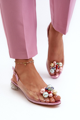 Transparent Low-Heeled Sandals with Pink Decoration D&A MR38-368