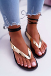 Sandały Lu Boo are black flip-flops with rubber straps, tied, with a low heel, made with attention to cut and sewing.