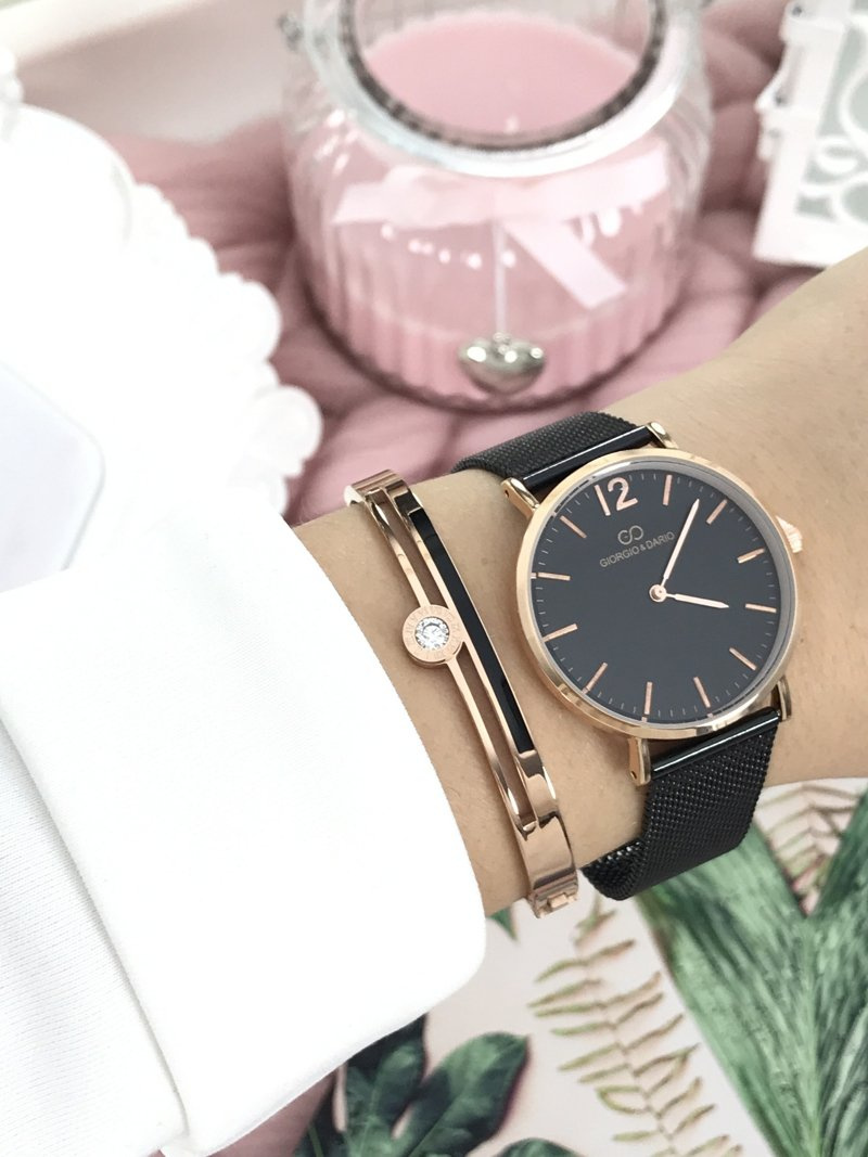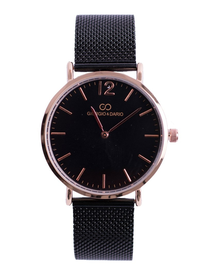 The Rene watch by Giorgio & Dario is a treat created for women who love tasteful additions not only to elegant but also to everyday stylizations. The watch has a flat glass, thanks to which it looks even better on the hands and at the same time is more readable. The bracelet in the shape of a mesh in the color of the dial and the envelope in gold colors made of surgical steel with the possibility of easy and quick adjustment. High quality of the mechanism and envelope.