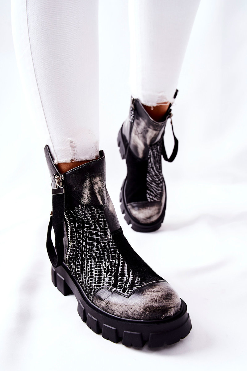 Leather Stiletto Boots Maciejka Black and White 05137-21