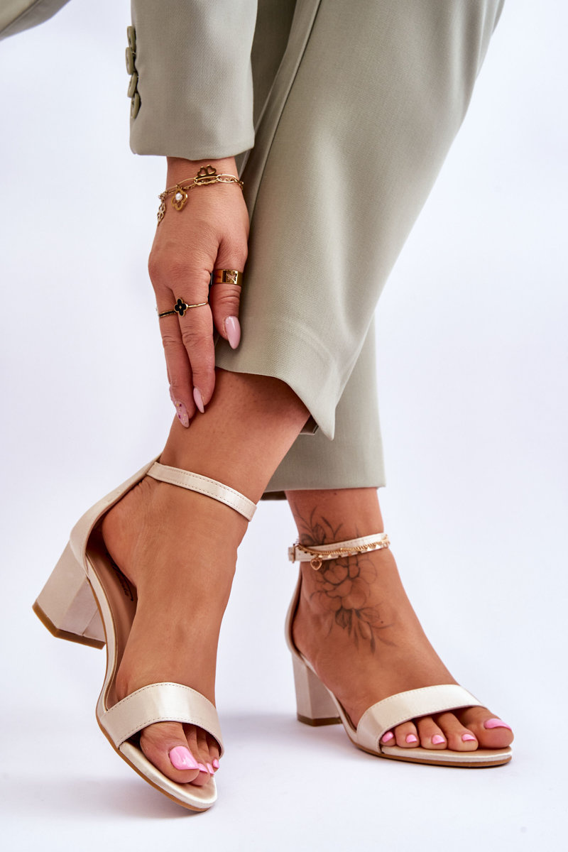 Women's sandals are made of a textile material that imitates satin. They were set on a heel in the form of a stable post. They have an open, rounded toe and a covered heel with a stiffened heel counter. Fastened with an adjustable strap with a buckle at the ankle. The insole made of eco leather will ensure comfortable use. When choosing a size, please refer to the size chart.
