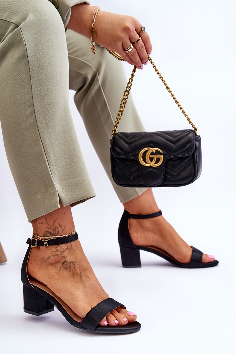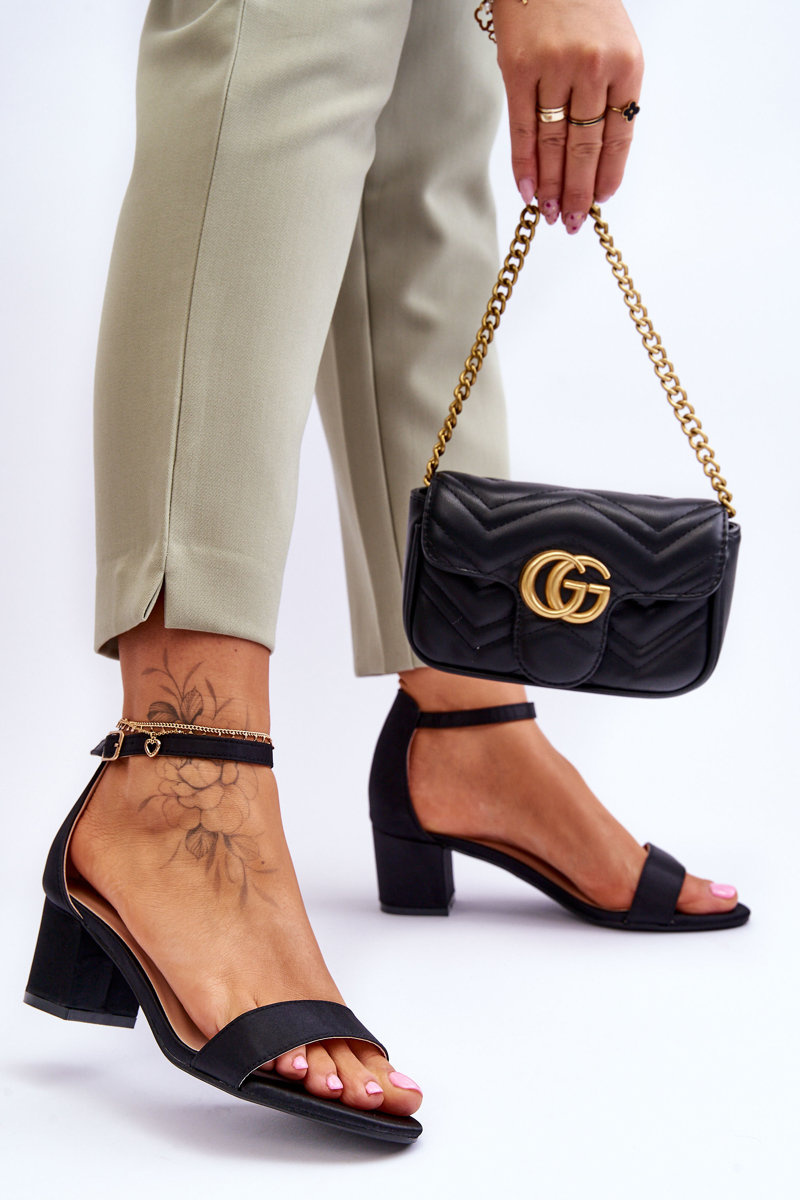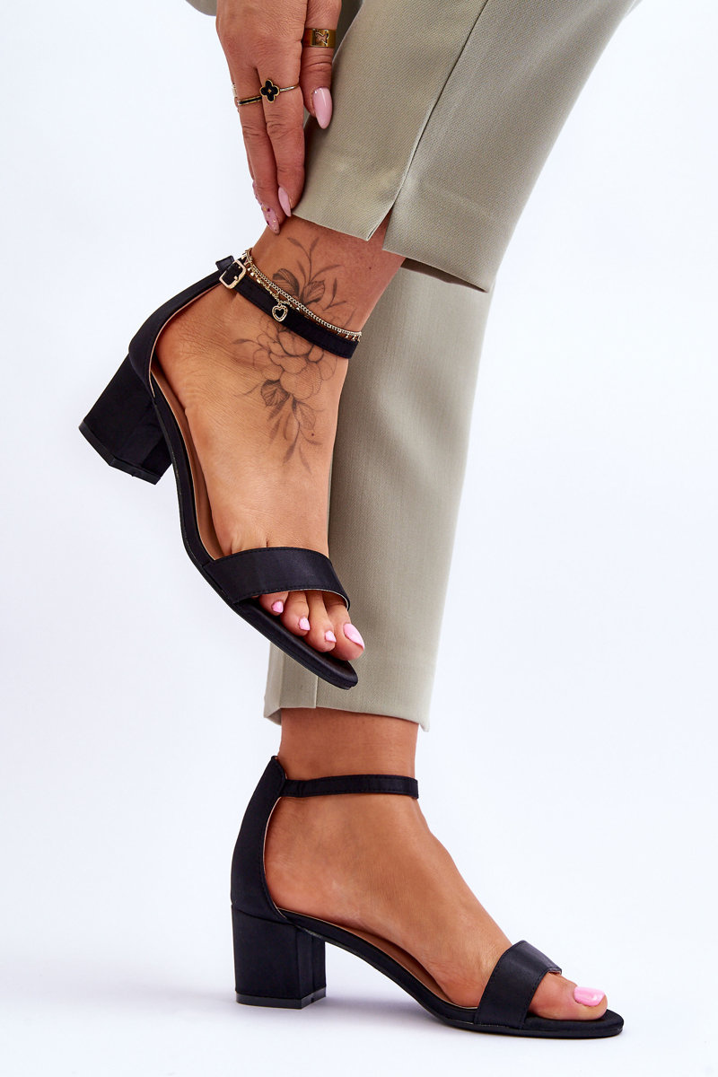 Women's sandals are made of a textile material that imitates satin. They were set on a heel in the form of a stable post. They have an open, rounded toe and a covered heel with a stiffened heel counter. Fastened with an adjustable strap with a buckle at the ankle. The insole made of eco leather will ensure comfortable use. When choosing a size, please refer to the size chart.
