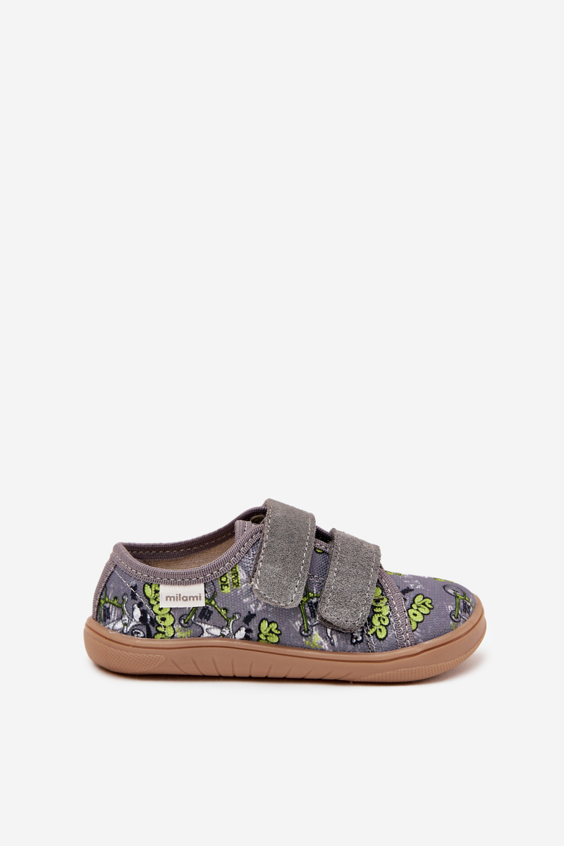 The Milami children's slippers are barefoot shoes designed to support the natural development of movement and running. Made from textile material and featuring a double Velcro strap, they ensure easy on-and-off and a perfect fit for the foot. The thin sole improves contact with the ground, helping to maintain balance, and the wide toes allow for free development of the toes, preventing deformities. The lack of heel elevation keeps the body in a natural, healthy position. These shoes support the development of sensory-motor skills, allowing little ones complete freedom of movement. When choosing a size, please refer to the size chart. When choosing a size, please refer to the size chart.